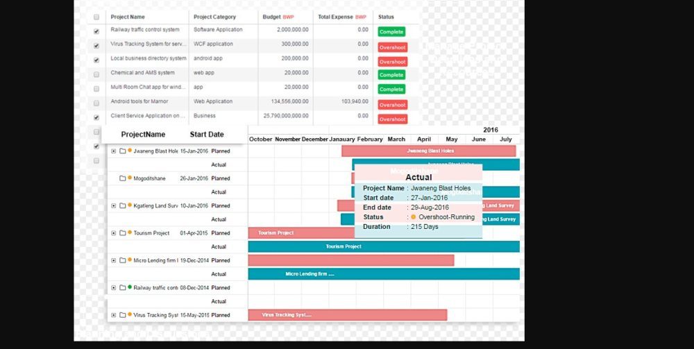 The project management module gives you tools to monitor execution of the projects, keep track of the budget, expenses, employees time & risk management.