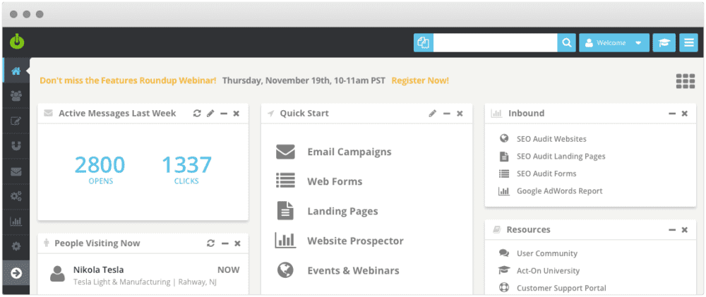 Act-On syncs with all major CRMs, including Microsoft Dynamics, Salesforce, Infor, Sugar, and NetSuite. It gives the user the ability to manage leads and report on returned revenue with ease.