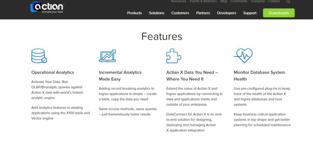 Actian X is a combination of industry-leading Ingres transactional and Vector analytic databases, world class integration and a robust monitoring tool. Actian X runs business critical systems for Fortune 100 companies and government agencies and has industry leading customer satisfaction ratings.
