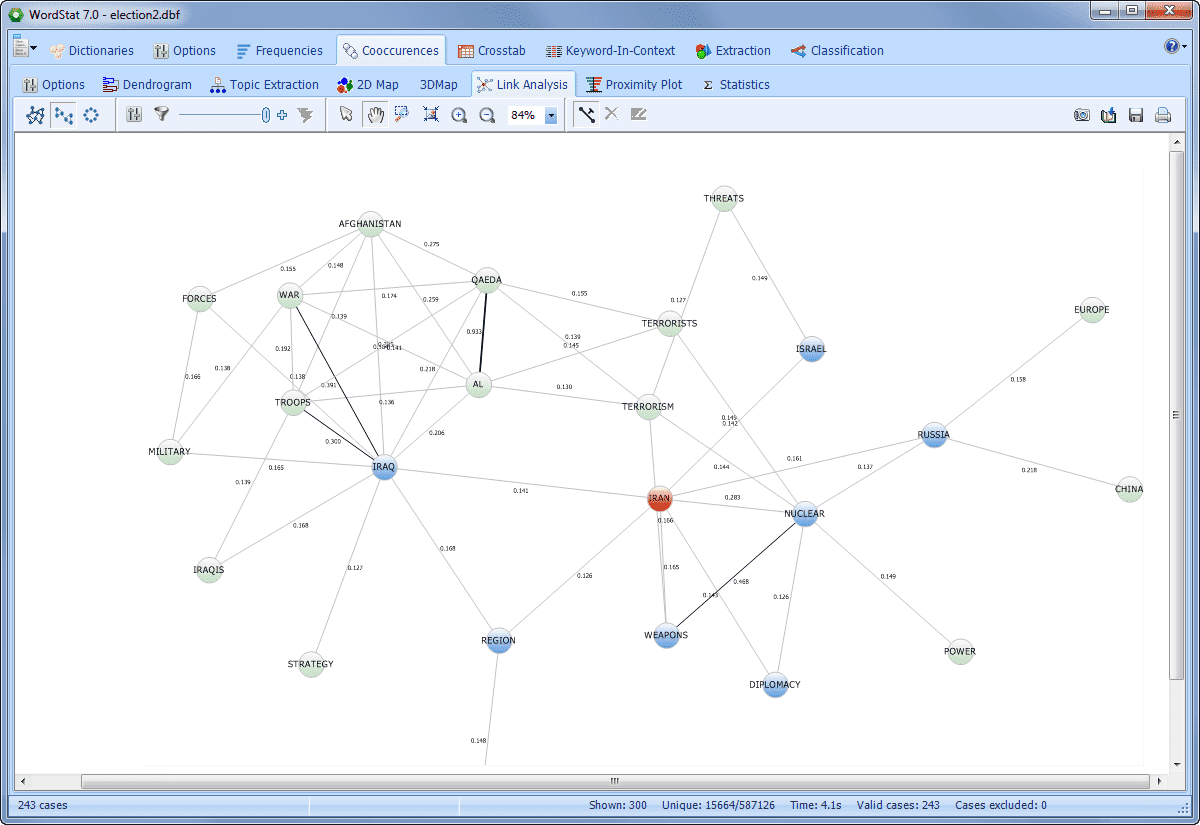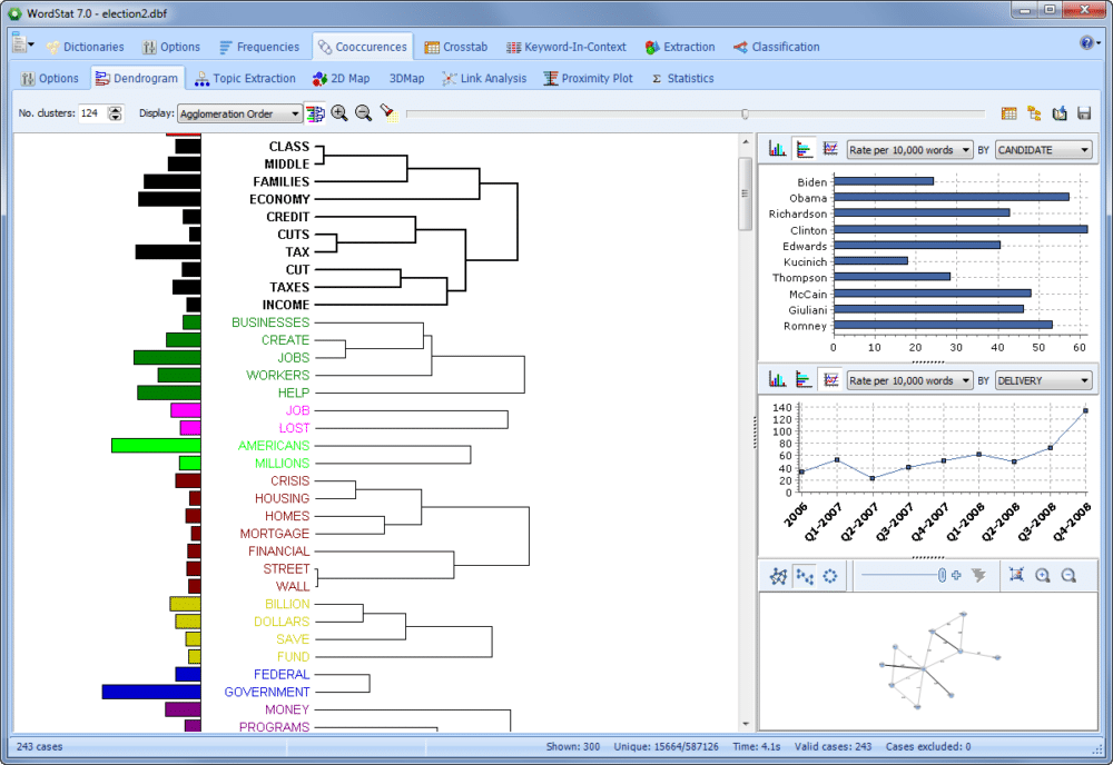 WordStat 7 provides numerous improvements in data visualization. There is a new link analysis feature to create network graphs and explore the relationship between concepts. There are dashboard views for easier and faster comparisons with structured data, as well as several enhancements in the graphical display of text data.