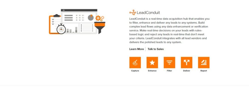 ActiveProspect provides you with a complete set of software as a service product that is designed to function together. ActiveProspect provides you with LeadConduit a real –time data acquisition hub that provides you with an excellent platform for filtering, enhancing, and delivering all your leads to any system.