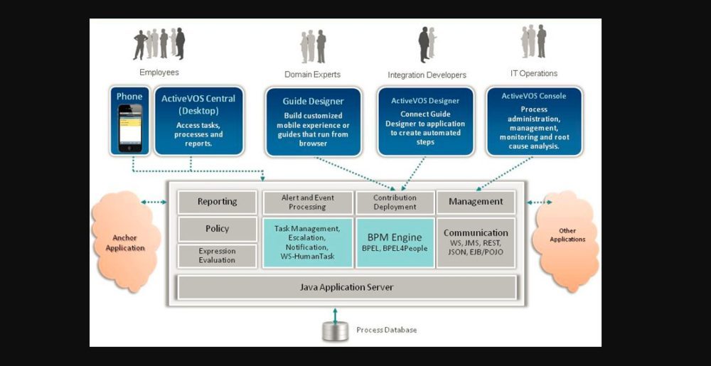 ActiveVOS-a service oriented process automation platform specifically designed to address the needs of the members of IT project team’s architects, developers and project managers. In ActiveVOS, you can quickly create BPMN2.0 compliant process models that seamlessly integrate people, processes and systems, increasing the efficiency and visibility of your business.