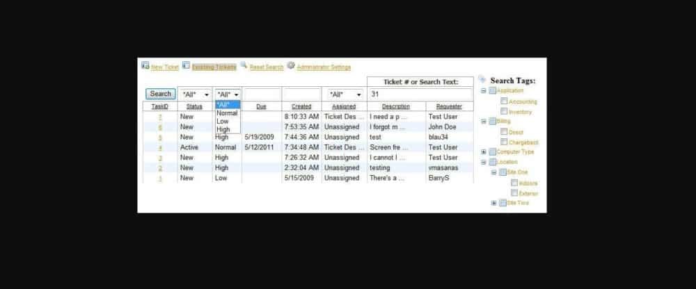 Sorting and filtering is possible by status, priority, user group, date created and description.AdefHelpDesk is customized in such a way to allow searching by ticket or any text field. AdefHelpDesk is easy to use and friendly to users.