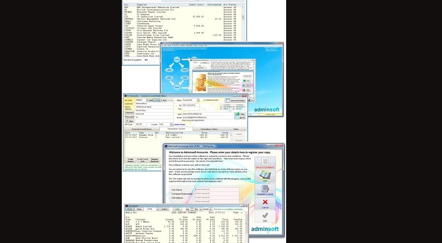 Adminsoft Accounts is internet aware, so at the click of a button, send an email to customers, go to your customers web site, see a street map showing where your customer is located, and even make a basic check on customers details to assist with credit checking procedure. There is a full range of reports available, including Aged Debt, Daybook, a General Customer Report, Profit Analysis, Cost Analysis, Analysis by Sales Type, Analysis by Sales Person, Customers in Sales order, and Customers in Profit order. Adminsoft Accounts is multi-currency.