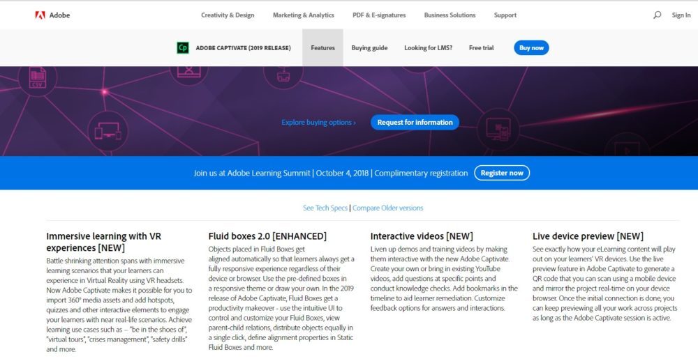 Adobe Captivate is a learning management system that enables users to set up and measure students’ training. Its features include auto-assigning activities, recurring certification training, reports and notifications, user management, course equivalent offerings and instructor sessions.
