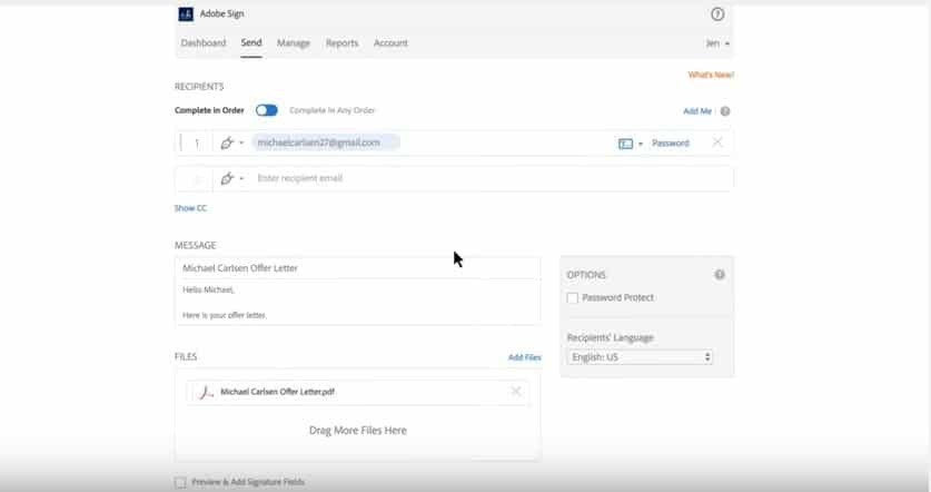 The user can also sign and return on any device in minutes as well as track each step from beginning to end. Adobe Sign is just like sending an email. Enter the signers’ email addresses in the order you want them to sign. Insert fields to collect e-signatures and other information. Then, just hit ‘send’. It is as simple to sign as it is to send.