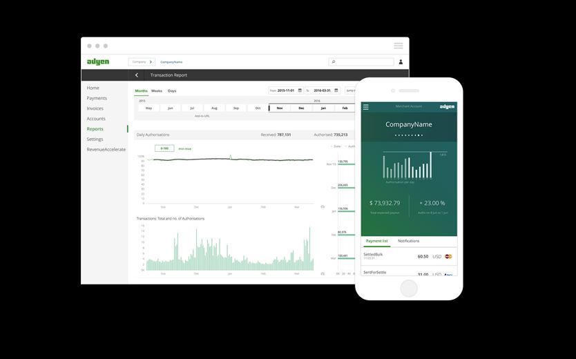 Adyen can process all your payments in one system, so you can see what's going on in your stores, your mobile app and online, in a single dashboard.
