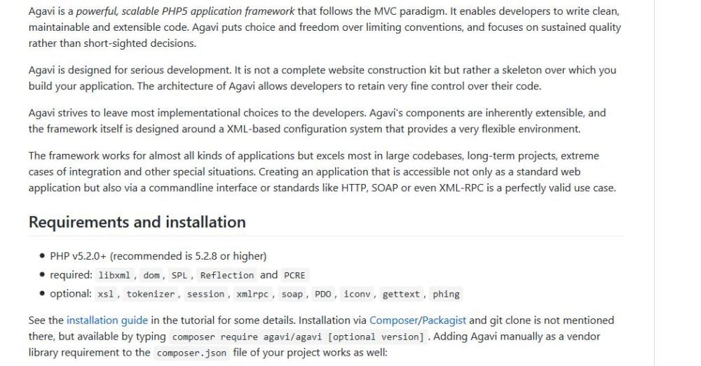 It is not a complete website construction kit but rather a skeleton over which the developer can build the application. The architecture of Agavi allows developers to retain very fine control over their code.Agavi strives to leave most implementational choices to the developers.