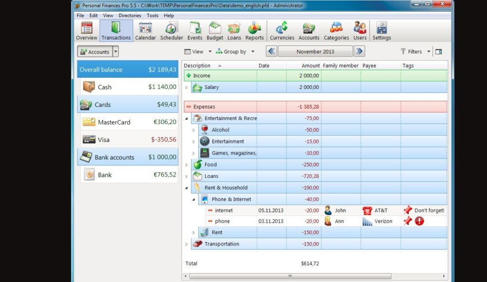 Alzex Personal Finance is a free accounting software that uses grouping expenses and income into categories. Through this, users can see where money is going and how much is spent at a single glance, without the need to examine the reports