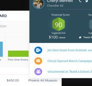 • Holistic view of all interactions with current and prospective donors