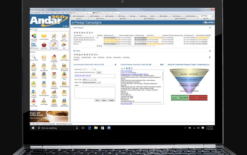 Andar360 is a non-profit CRM software specialized in workplace campaign based fundraising and fund distribution. Andar360 provides a complete picture of donors and fundraising campaigns. Andar360 is typically a donor-centric fundraising solution where all activity for a donor, prospect, or workplace is connected to one record.
