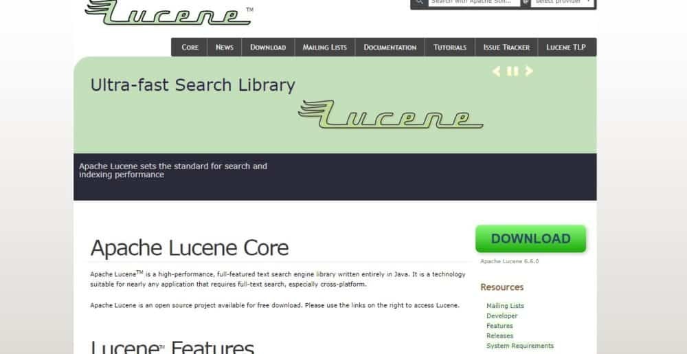 Apache Lucene is a high-performance, full-featured text search engine library written entirely in Java. Apache Lucene is a technology suitable for nearly any application that requires full-text search, especially cross-platform. Apache Lucene is an open source project available for free download. Jenkins is providing continuous integration capabilities to the Apache Lucene project. It is responsible for running nightly builds, tests, javadocs, and code coverage reports. Both binary and source releases for the latest version of Lucene are available from the Apache Mirrors. Archives for all past versions of Lucene are available at the Apache archives.