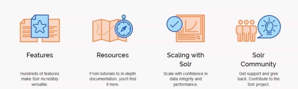 Solr also publishes a lot of metric data via JMX, which means easy, simple monitoring. Faceted search and filtering, geospatial search, highly configurable and user extensible caching, advanced configurable text analysis, security built right in, advanced storage options etc are some of the other myriad of tools and features making this an elaborate data management system.
