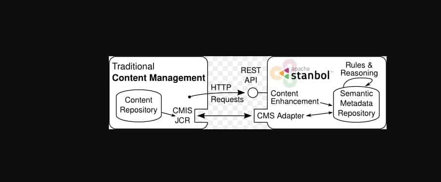 If you have a CMS and you want to start using semantic technologies in combination with your content, Apache Stanbol is a good software for you.To make the integration as easy and painless as possible all Apache Stanbol features are accessible via RESTful web services. All you need is to connect your CMS via HTTP to an instance of Apache Stanbol. Additionally, Apache Stanbol comes with a CMS Adapter component as a bridge between a CMIS/JCR compliant content repositories and the semantic metadata repository in Apache Stanbol.
