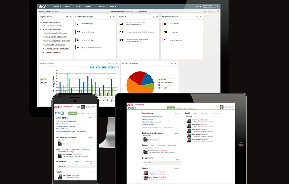 APS is a system that brings innovation and scalability to modern human capital management. Core HR, payroll, time tracking, ACA compliance, recruiting, applicant tracking, and on boarding all come together creating human capital management harmony.