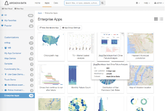 Easily create, embed and publish visualizations, with secure access to fine-grained data, for any user with a browser.Arcadia Data’s Enterprise unifies visual analysis, data discovery and business intelligence native in Hadoop. Its unique on-cluster execution architecture runs analytics directly on the organization’s Hadoop nodes. No need to add hardware or pull standalone extracts which makes everything simplified and easy to manage.