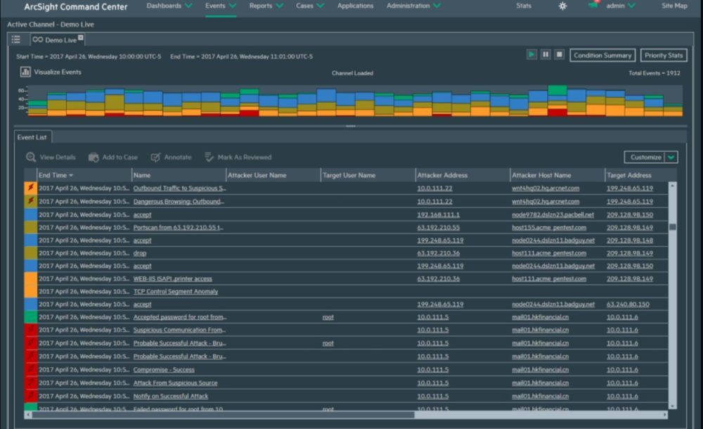 ArcSight allows security teams to move from enriched event data, to powerful real-time correlation, use workflow management and security orchestration, and to triage advanced persistent threats to mitigation and resolution.
