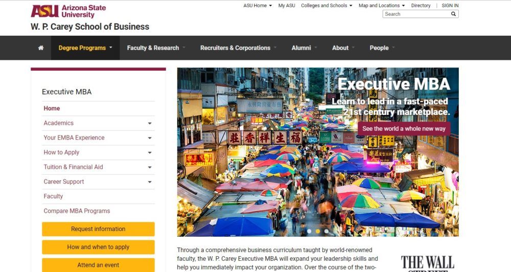 Arizona State University, W.P Carey School of Business, Executive MBA