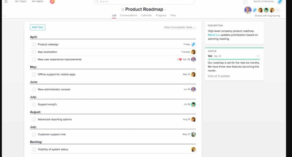 Asana easily lets users start a team and track projects from start to finish by eliminating the need to make a list or send an email for companies with off-the-charts growth to local businesses and non-profits.