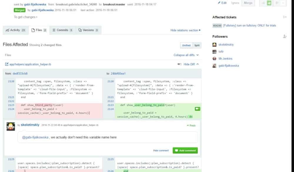 Assembla provides merging requests in tickets, Github integration and offers git blame and blame feature for SVN and Perforce too; task management – users can log into Assembla get information’s about projects progress without the need of looking at multiple spreadsheets or wait for email status updates. Task management creates tickets quickly and easily and adds details necessary for the project.