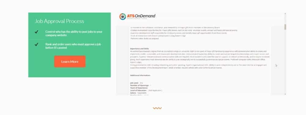 ADDITIONAL INFORMATION ATS OnDemand is the premiere applicant tracking system for small to mid-sized business. Post your job and reach candidates on hundreds of job boards and social media platforms with our one-click CRM tool. Easily switch from your current ATS without losing information already in the system.