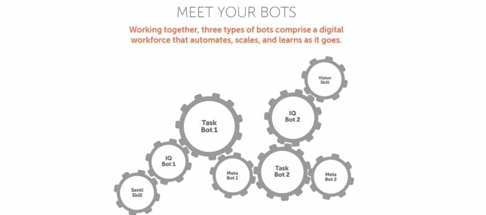 Meta Bots use integrations to automate complex, multi-system dependent processes. Meta Bots are responsible for the application of robotic process automation across environments. Meta Bots automate repeatable, complex, system-to-system processes using API-level integrations, then share them with Task Bots to get the job done.The third IQ Bots are the platform’s brain. They are best for thorough fuzzy rules and processing unstructured data. Structured and unstructured data are easily understood, interpreted and implemented in real time via the IQ bots.