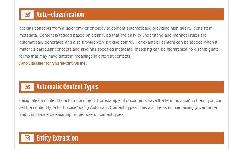 The classification software to increase findability using auto-tagging, metadata generation, and text analytics; and our pre-built connectors and federation to provide secure connectivity to a wide variety of content systems.