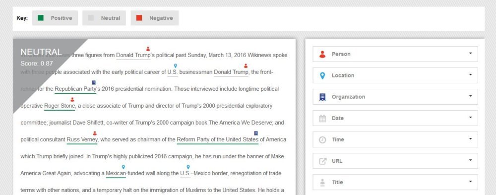 Rosette Text Analytics provides the entity linking product that facilitates uncovering of entities, delivering of structure, clarification of data, and gaining of insight into a user’s data. The entity extraction feature facilitates automatic finding of places, names of people, organizations and across many languages. The entity extraction feature also enables tracking of customer sentiments around companies and products and resolving of a person’s identity for fraud detection and government security. Rosette Text Analytics also features the sentiment analysis feature that facilitates determination of sentiment in a document or an entity specific level. The sentiment detection also provides a good platform for returning sentiment scores for individual entities within a larger document. Rosette Text Analytics features the relationship extraction product that facilitates recognizing and extraction of the action that connects entities by using semantic rules and deep learning. The name matching feature by Rosette Text Analytics enables verification of identities and matching of names and organizations against vast databases. The deep understanding of the linguistic complexities of names enables Rosette Text Analytics to carry out name matching efficiently.