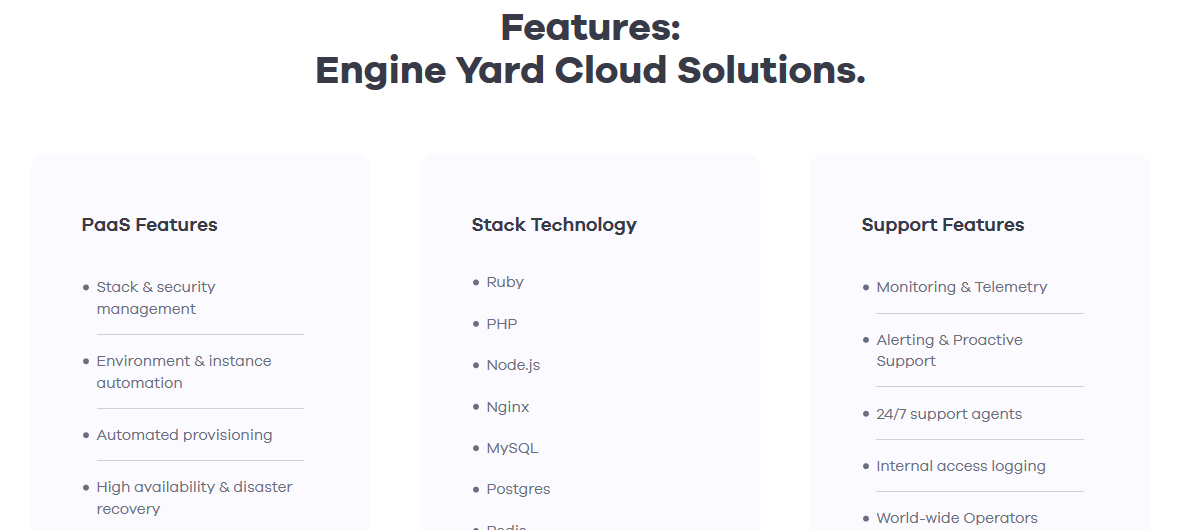Engine Yard is the leading cloud orchestration platform empowering developers and DevOps to provision, manage, monitor and control applications in the public and private cloud. The company gives our unmatched control and choice through a broad and trusted application cloud, coupled with expert support, enabling the customers to focus on creating great applications instead of managing their platform. Engine Yard provides network management and automatically configures all security group and firewalls. Engine Yard presents user access management. The environment management is also provided by Engine Yard which easily copies the entire environment for testing purposes. Engine Yard cloud receives updates…