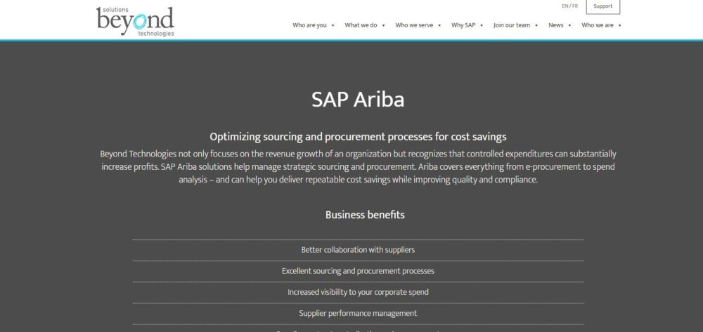 Beyond Technologies Ariba combination of pragmatism, knowledgeable resources and collaborative business approach makes us a long-term partner for all our clients.