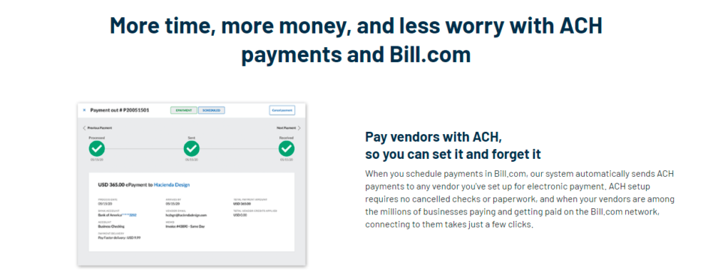 With Bill, businesses can harness the technology to streamline their payment processes by bringing smart AR and AP automation and new payment capabilities to their businesses. With Bill, businesses can increase efficiency and save time by automating busywork so that they can focus on business. Additionally, businesses can gain more control by setting up approval workflows and custom roles to suite their team.