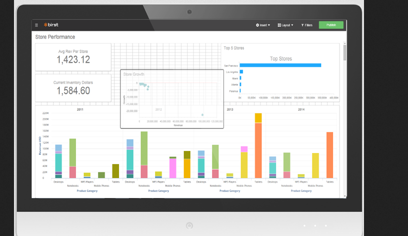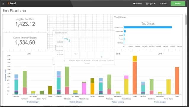 Birst lets it easier to manage stores’ performance by clicking away on the visualizations especially with red marks to see problems and by giving inventory reports it also saves time with added security.