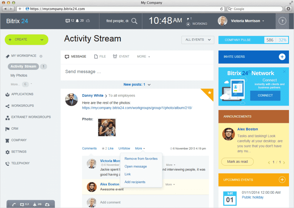 Besides adding a CRM dashboard for deals, Bitrix24 has significantly beefed up its workflow module. Users can now create and participate in common workflows, such as leave requests and expense approvals directly via the Activity Stream. The mobile apps for Android and iOS have been updated as well.