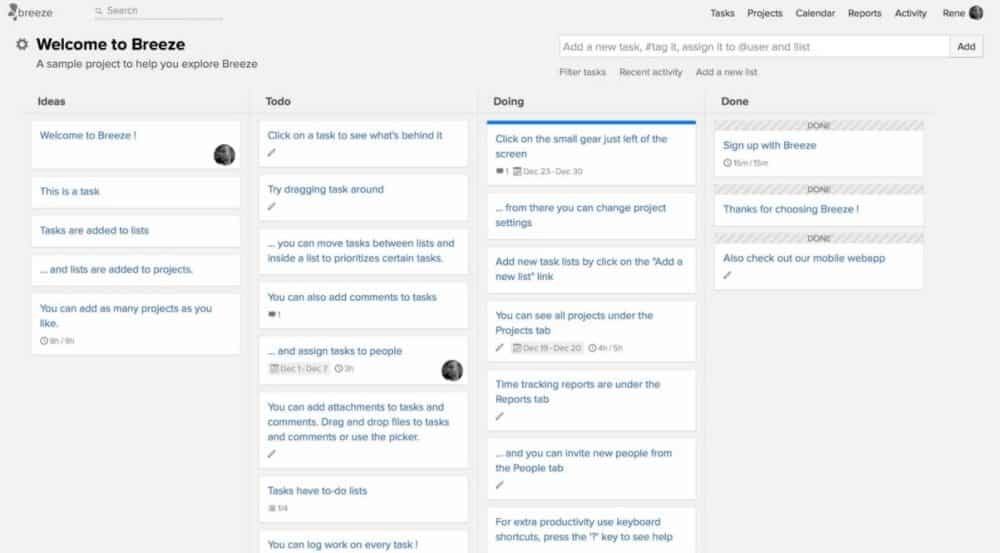 Breeze is a task management tool that organizes work visually, allowing users to see and interact with an entire project, whilst keeping focus on important tasks.