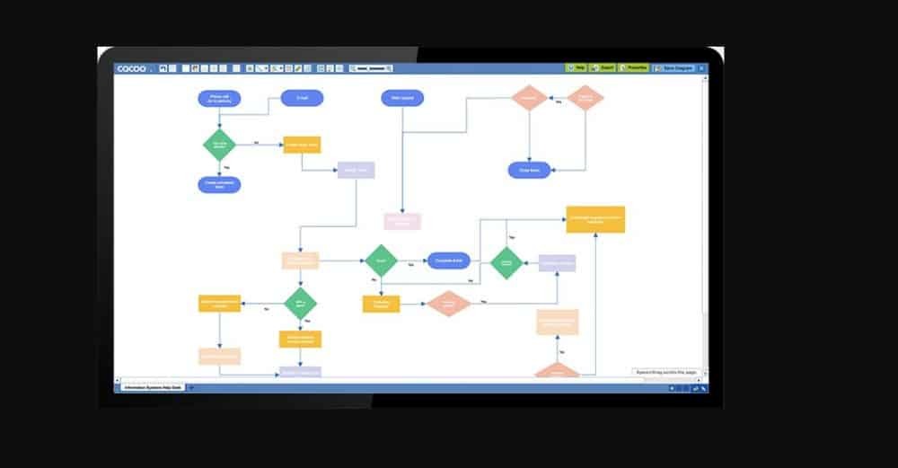 Cacoo has several premade templates and shape libraries, including those for flowcharts, mind maps, organizational charts, floor plans, infographics, network maps, UML and wireframes which users can click on each object and edit the text, change the color scheme, or use the drag and drop feature to add additional shapes and symbols. Cacoo’s canvas automatically expands as users add shapes to it, and users can add multiple pages to their diagram as well as multiple layers to each page where users can also add hyperlinks to quickly jump from one group to another if the user’s chart is larger than the viewing screen.