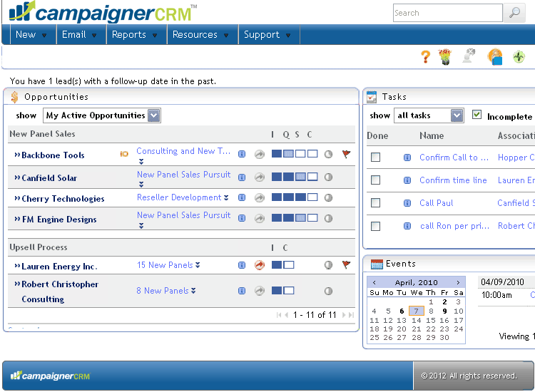 Companies must maintain and manage an ongoing flow of opportunities in order to produce a consistent revenue stream. CampaignerSPM gives companies greater visibility into the pipeline with metrics at each stage of the sales process allowing managers to identity and act on trends early on. Whether your company has a single salesperson with a long and/or complex sales process or a globally diverse large sales team, CampaignerSPM’s advanced reporting features and integration help target the right prospects and efficiently move them through the sales pipeline. Additional features include: