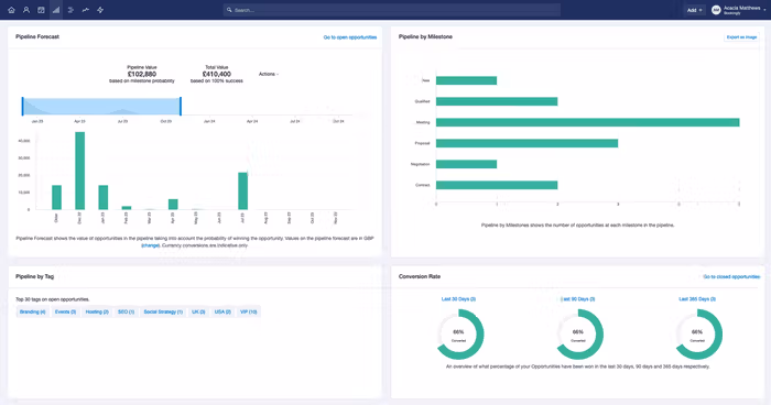 • Projects inside the CRM: Sales-to-delivery continuity (especially useful for services businesses).