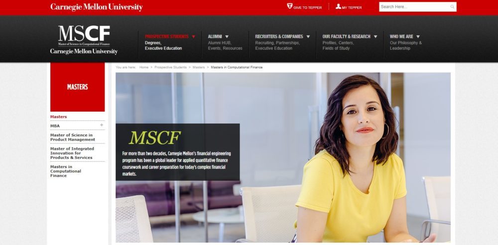 Carnegie Mellon University’s Master of Science in Computational Finance at the Pittsburg campus offers an integrated, inter-disciplinary curriculum that lays equal emphasis on both academic theory and practice. Graduates of the program obtain the analytical and technical expertise needed to expertly handle challenges and opportunities in modern financial markets.