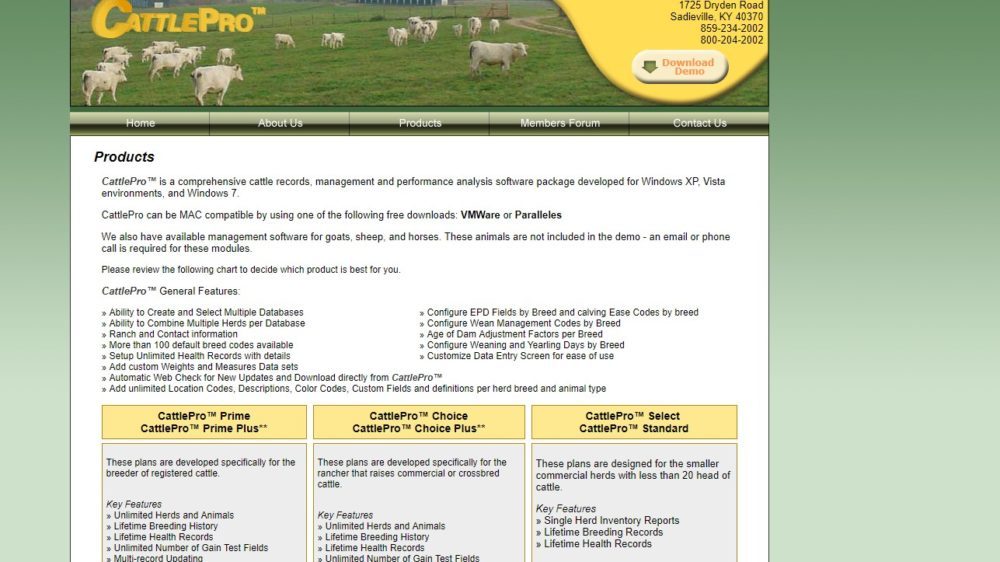CattlePro greatly aids the producer in keeping up with technology and the everyday demands of the cattle business. The CattlePro system was specifically tailored to the beef industry’s unique needs, and it is also pre-wired and pre-plumbed to make placement and installation easier than ever. CattlePro keeps making advancements to make record keeping more simple and easier to use for current customers prospective. The program is also available in Spanish and Portuguese and offers its customers the flexibility to switch languages with a click of a button. CattlePro™ Prime and Prime Plus are designed for the registered cattle rancher. CattlePro™ Choice and Choice Plus are intended for the commercial cattle producer. CattlePro™ Select is intended for the smaller commercial cattle producer. And finally, CattlePro™ Standard is intended for the smaller commercial cattle producer but with fewer reports. CattlePro can be MAC compatible by using one of the following free downloads: VMWare or Paralleles. Compare farm performance between farms, side by side or consolidated. Benchmarking reports identify areas needing improvement. Manage the data from all farms in the entire production system from a central location. CattlePro has more than 100 default breed codes available. Setup unlimited health records with details and configure Wean Management Codes by breed. CattlePro will help its clients to improve the performance and efficiency of the ranch operation.