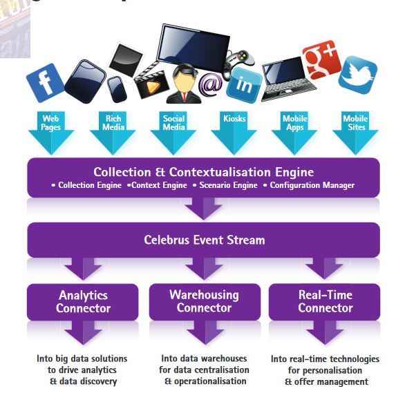 Celebrus collects, contextualises and delivers data about how individuals are behaving across a brand’s digital channels including websites, mobile apps, social and streaming media. The tagging-free software streams this online behavioural data in real-time, or near real-time, into the client’s chosen target database or technology.Celebrus is the platform of choice for leading brands for whom customer-centricity is essential to success.  These organisations understand the need to get a complete picture of individual customers across all channels, devices and time. Celebrus technologies is a software company which provide dataset that consist of customers information across digital channel such as mobile phones using particular mobile app captures customer behavior by telling which is the most visited links ,keep track of customer's click etc ,streaming media also gives brief customer behavior by telling an organization about viewer of streaming media(youtube) etc .Celebrus technologies not only provide group of customer behavior but also provide individual customer data also it gives deep customer understanding ,not the latest trend. celebrus tells customer's insights on numerous parts of business ,including marketing ,finance ,product development .Celebrus keeps business ahead of competition by keeping business updated .All these services provided by celebrus increases sales by reading customer behavior, gives brand loyalty by bringing satisfaction to customers , reduces cost of marketing budgets. Celebrus Helps analyze individual customer behavior over web which increase sales and customer experience .Provide services to satisfy customer and improve cost .celebrus dataset engine are so powerful that they response within a minute irrespective of the size of the data needed by an organization about individual customers.