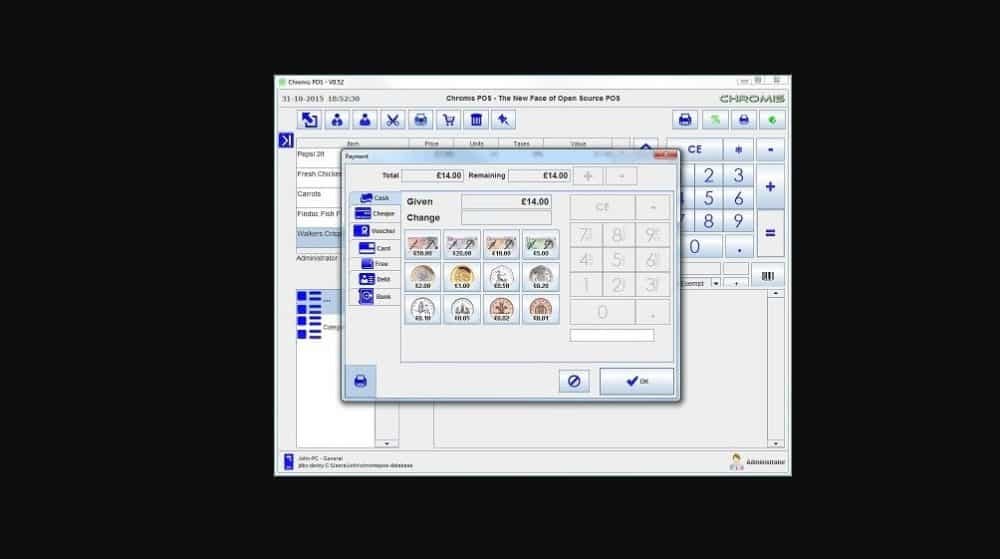 Chromis POS is a free and open source point of sale application for small, medium and large sized businesses. Users are provided with a simple, fast, and efficient way for installing it using its own custom installer that can be used on a number of operating system.