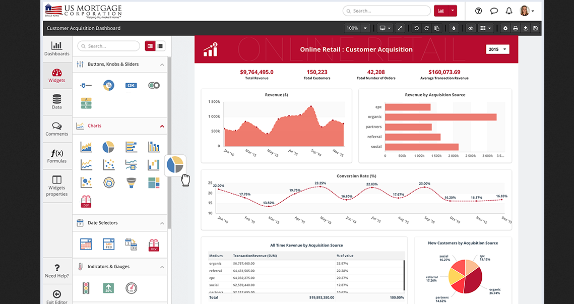 ClicData, provides an intuitive SaaS solution to create and share business dashboards. Clicdata features include drag & drop indicators on workspace and connect data from any sources in just a few clicks to create live dashboards and reports for business.