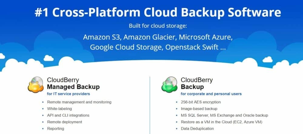 CloudBerry is a suite of online backup solutions that manage file transfers across a range of cloud storage services, including: Amazon Web Services, VMWare, Oracle Cloud, Google Cloud, MS Azure, Cisco, and OneDrive. The vendor, CloudBerry Lab, has an established partnership with Amazon, Google, and Oracle, among others.