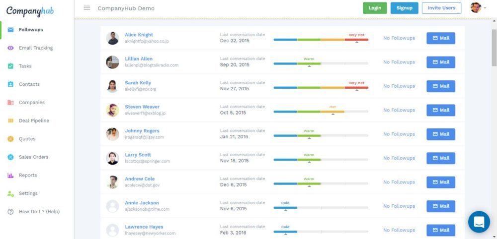 CompanyHub is a fully customizable low-cost CRM for small businesses that automate any process in clicks with sales bots. CompanyHub also can track virtually everything in your industry. CompanyHub offers the following key features management of leads, automation of emails, reporting for sales, a customizable CRM, sales bots, and integrations. The lead management feature allows users to create new leads or contacts quickly without leaving the page. Users can also add activities such as notes, conversations, and tasks from the same page. Users can also perform editing like Excel, whereby they double-click on any field to make changes. The lead management feature also makes it easy for users to spend less time when creating follow-up tasks. CompanyHub provides a 360-degree view of the customers in one place whereby one can see all the activities, scheduled tasks, and conversations with them. The email automation feature allows email syncing. Through this, the users only need to create contacts with an email address, and the past and future conversations will be automatically synchronized. The email automation feature provides email tracking tool that tracks link clicks, and email opens to locate interested leads as well as which emails are more effective. The sales reporting feature gives real-time visibility in sales. The sales reporting feature provides a sales dashboard that tracks the overall sales performance and meets the set targets. The feature also provides the team with a dashboard that tracks the performance of individuals against each other. The sales reporting feature also offers the needed metrics such as the deal sizes and close rates.