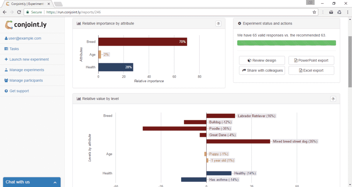 Conjoint.ly helps managers understand what drives customer behaviour through surveys that simulate the act of purchasing (or any other type of choice-making). It offers a complete online solution from experiment set-up to data analysis and presentation of reports on marginal willingness to pay, market share simulation, segmentation, and more.