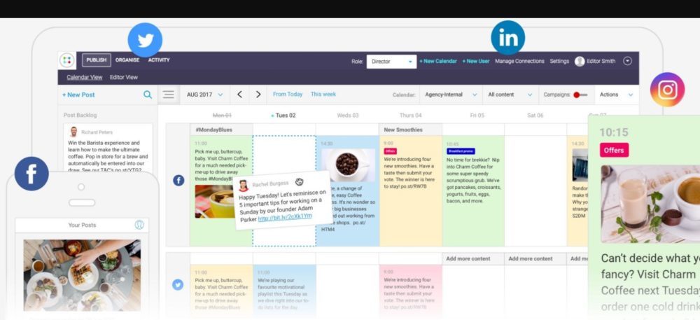 ContentCal provides you with amazing social media planning and publishing tools which you can use to create quality content and plan easily. You can create your content in advance and schedule on auto publishing tools for your social channels.