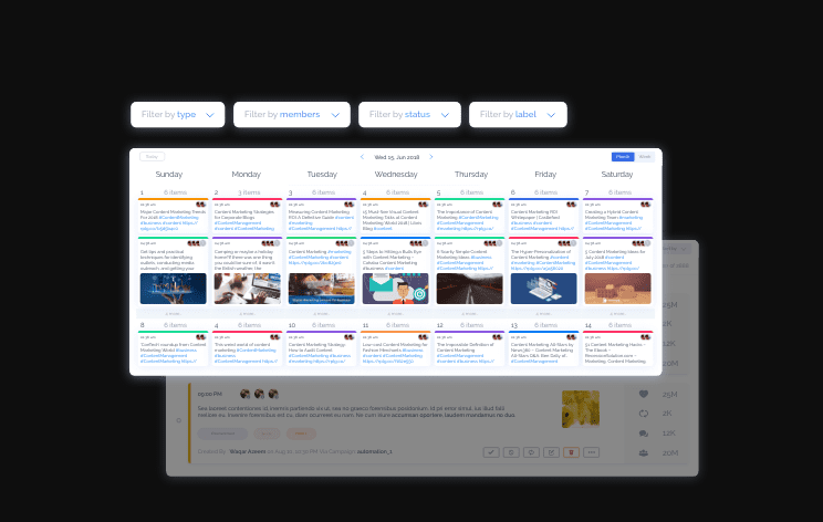 Content studio streamlines your content workflow by collaborating with your team members and planning campaigns from an interactive calendar or list view. You can plan, approve, reject or schedule content for all your marketing channels from a single place and be in control of your content and social media strategy.