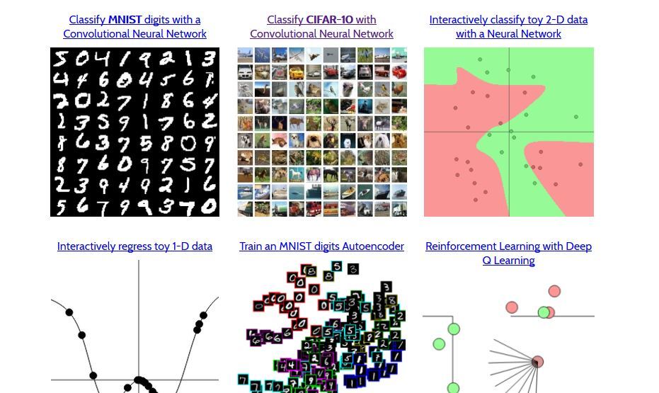 ConvNetJS is a Javascript library for training Deep Learning models (Neural Networks) entirely in users’ browsers. Users just open a tab and they are training. No software requirements, no compilers, no installations, no GPUs, no sweat. The library allows users to formulate and solve Neural Networks in Javascript, and was originally written by @karpathy (a PhD student at Stanford). However, the library has since been extended by contributions from the community. The code is available on Github under MIT license.