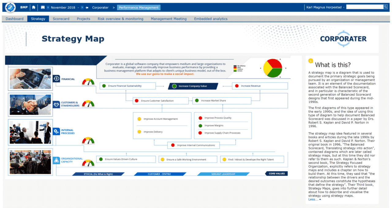 With Corporater, scorecards and KPIs are more than just data. They tell the complete story of your journey as you execute your strategy. Corporater provides everything you need, out of the box, including strategy maps, scorecards, strategic objectives, KPIs and strategic initiatives.