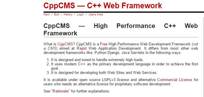 To avoid crashes, buffer overflows and memory leaks, this framework has Smart pointers, STL, Boost and similar tools that allow the user to write safe code easily and fast. Thus, it lets the user work freely on the application’s business logic instead of the low level issues, as CppCMS has already taken care of it.It is available under open source LGPLv3 license and alternative Commercial License for users who needs an alternative license for proprietary software development.
